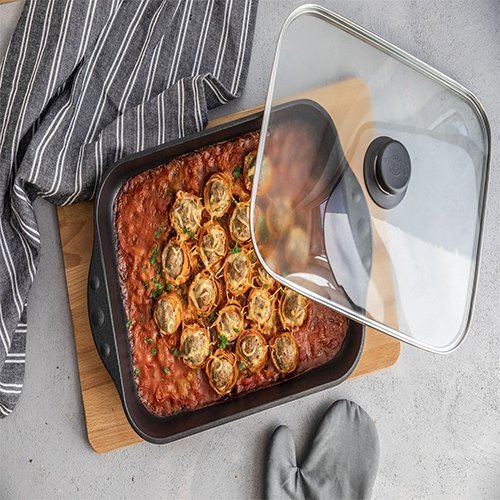 Dankzij de hoogwaardige materialen is het bestand tegen temperaturen tot maar liefst 250 graden Celsius. De twee stevige handgrepen maken het tillen en dragen van je culinaire meesterwerken een fluitje van een cent.